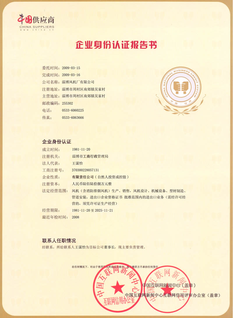 熱烈慶祝:一、淄博風機廠有限公司全系產品通過能效綠色節能環保二級認證. 二、 淄博風機廠有限公司通過安全標準化驗收合格. 三、注冊資金增資至7800萬.